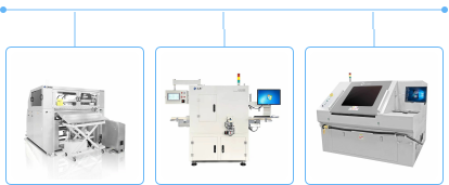 ▲依次是半固化片無塵自動裁切機、全自動X光檢查機、UV激光切割機